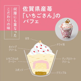 ・佐賀県産苺「いちごさん」のパフェ、有田金柑と濃厚チョコレートのパフェ、嬉野抹茶のパフェのセット商品